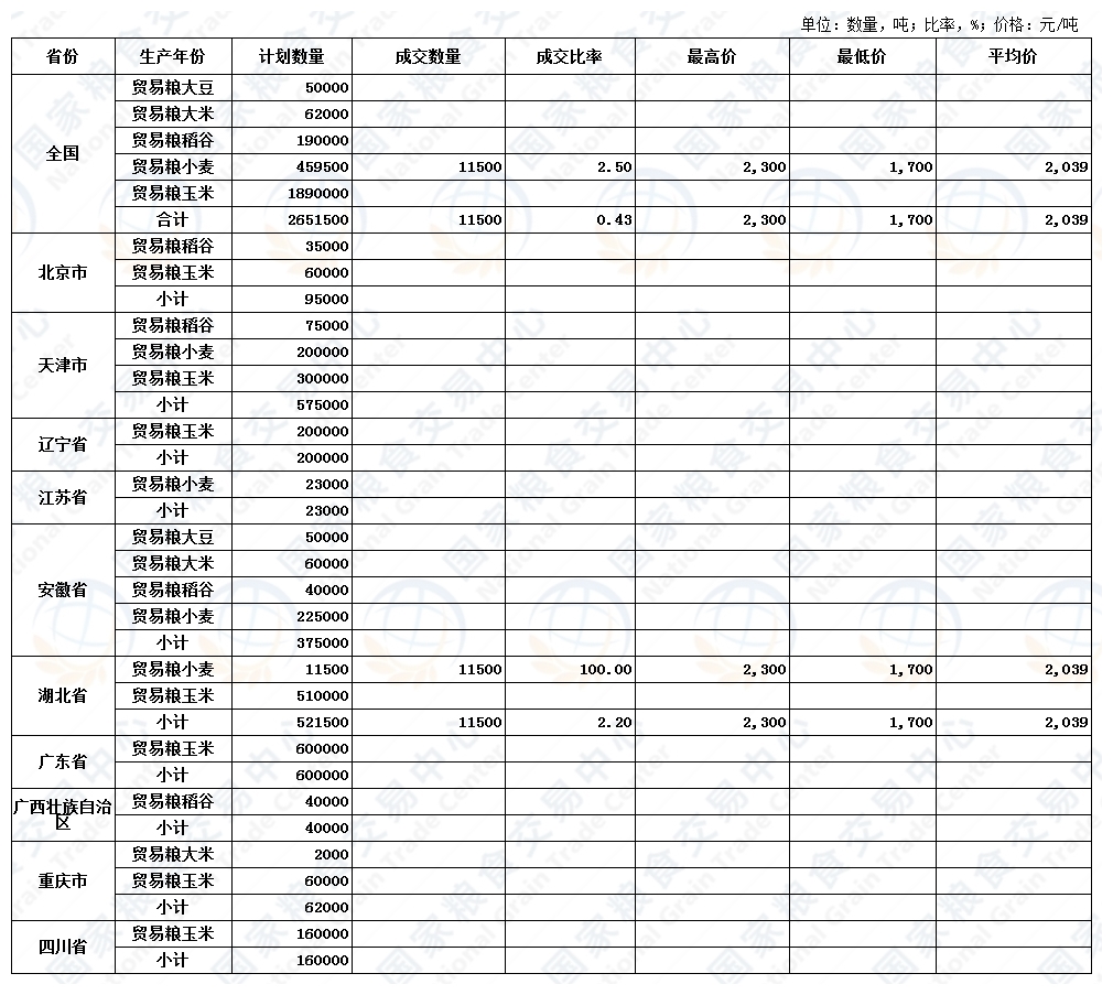 湖北粮网: 交易报告